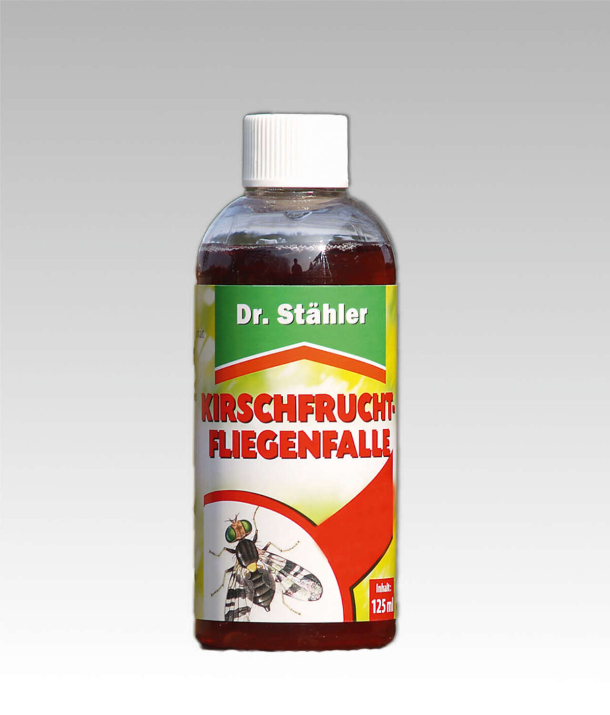 Die Kirschfruchtfliegenfalle ist eine umweltfreundliche und giftfreie Monitoringfalle. Die Kirschfruchtfliege legt 50 bis 100 Eier einzeln in die halbreifen Kirschen ab. Die Entwicklung der Maden beträgt ca. 1 Woche. Zum Abfangen der Kirschfruchtfliegen wurde die Dr. Stähler Kirschfruchtfliegenfalle effektiv konzipiert, um diese vorher in die Falle zu locken. Je nach Baumgröße 3-4 Fallen ( 1 Falle / Meter Baumhöhe) in den Baum hängen oder stellen.